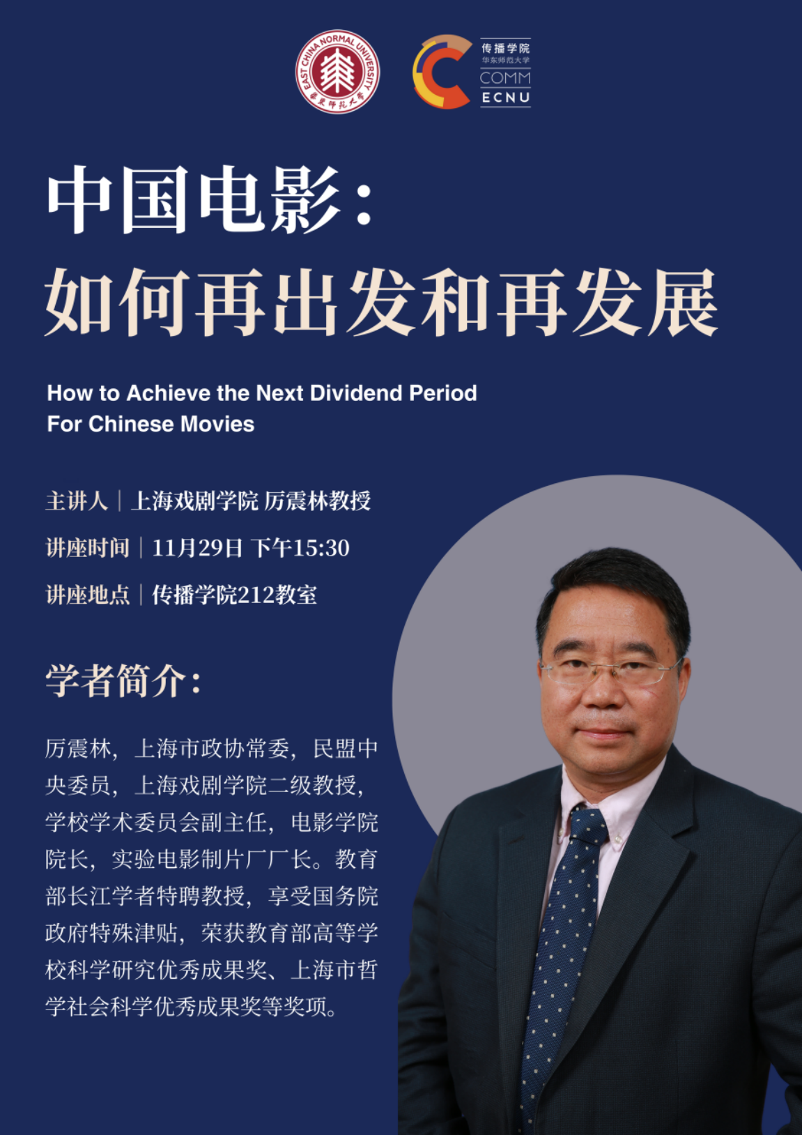 厉震林,上海市政协常委,民盟中央委员,上海戏剧学院二级教授,学校学术委员会副主任,电影学院院长,实验电影制片厂厂长。荣获教育部高等学校科学研究优秀成果奖,上海市哲学社会科学优秀成果奖等奖项。