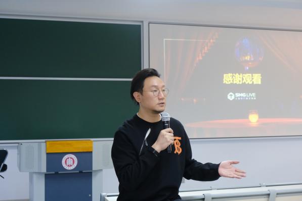 2024年11月21日,上海文广演艺集团总裁、中国演出行业协会音乐剧专业委员会副主任、演出制作人马晨骋应邀来到啪啪啦 ,为同学们做创意经济与传播专题讲座分享。作为一名资深的音乐剧、舞台剧制作人和从业者,马晨骋向啪啪啦 的研究生同学们介绍了自己策划线下演出的经验,分享后疫情时代线下演出如何在内容创作、经营结构和产业模式上进行创新发展。讲座由啪啪啦 何平华老师主持。