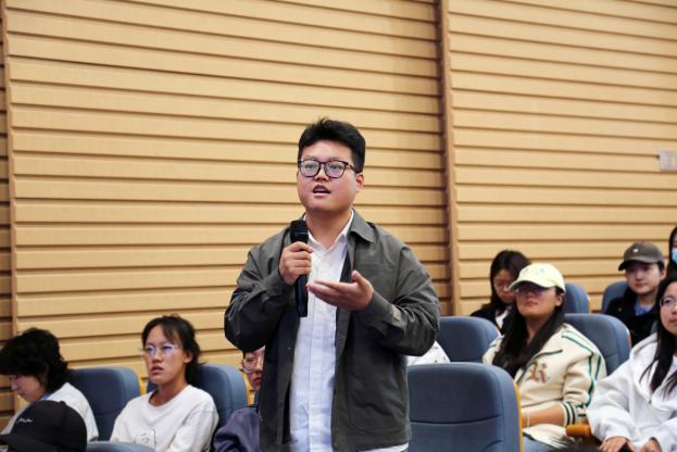 本场内容翔实、精彩纷呈,为同学们带来了深刻的启迪,现场掌声热烈,久久不息。在随后的提问互动环节,刘汉俊与同学们围绕长江文化及其精神内涵展开了深入交流,共同探讨了“如何推进长江文化融入思政教育并实现广泛传播”、“如何打造具有影响力的长江文化IP”以及“如何通过讲好中国故事助力文化强国建设”等议题。这些讨论有效激发了青年学子对中华文化的自信心与自豪感,也为新闻传播学子在文化传承领域提供了可借鉴的路径与全新视角。互动过程中,刘汉俊勉励青年学子要将文化传承与专业知识紧密结合,立足时代前沿,把握时代脉搏,以专业能力与文化热忱汇聚成传承创新的浩瀚江河,为讲好中国故事、传播中国声音贡献青春力量。