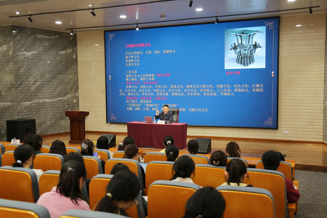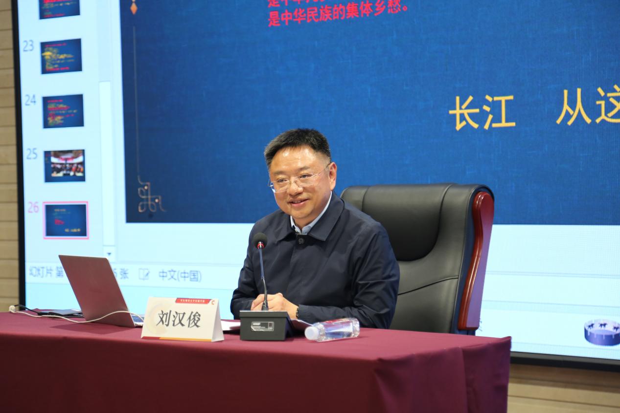 讲座伊始,刘汉俊提纲挈领地概述习近平文化思想要点,他追寻习近平总书记考察长江的足迹,重点阐述党的十八大以来,围绕长江经济带发展这一区域重大战略,习近平总书记主持召开了四次座谈会的重要精神。刘汉俊结合刚刚闭幕的党的二十届四中全会精神,重点讲解博大精深的长江文化,他从自然与文明的双重维度解读了长江的价值,将长江文化置于中华文明“二元结构”的宏大叙事中,以宏阔视野揭示了长江与黄河两大文化系统如何通过“互补、互敬、共生”,孕育出中华文明独一无二的韧性与活力。