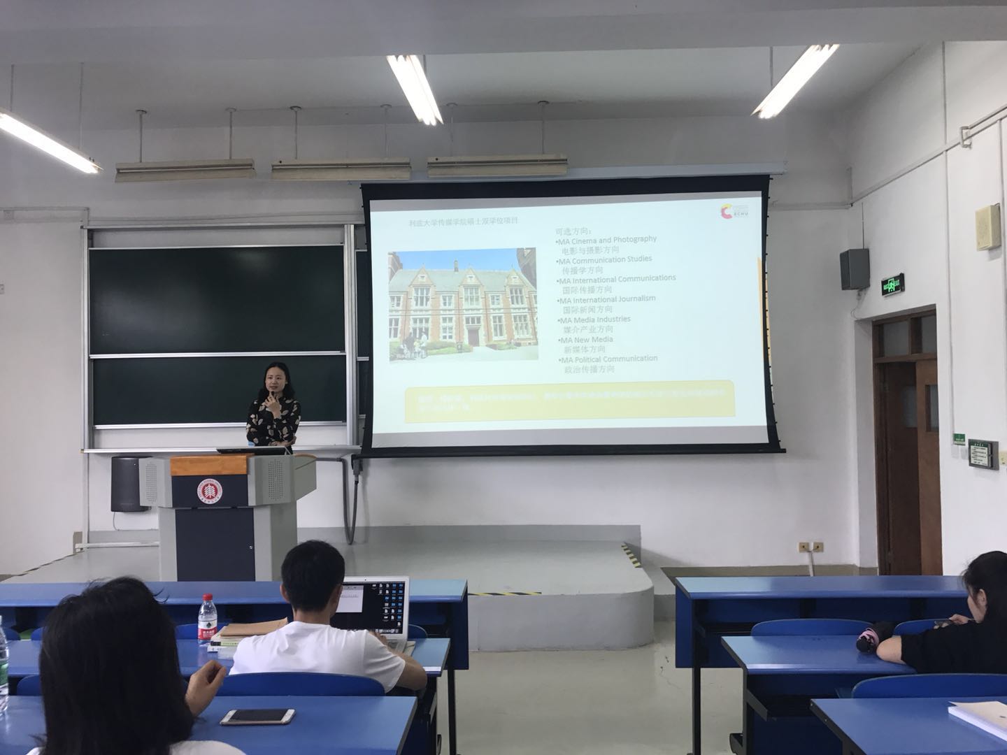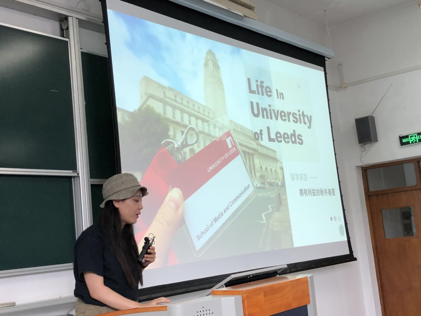 硕士双学位项目的17级新传专业的研究生舒心和陈佳琦同学也到现场和同学们分享她们的经验。她们用留学生活中记录下来的图片给学弟学妹们介绍了海外学习与生活的方方面面。