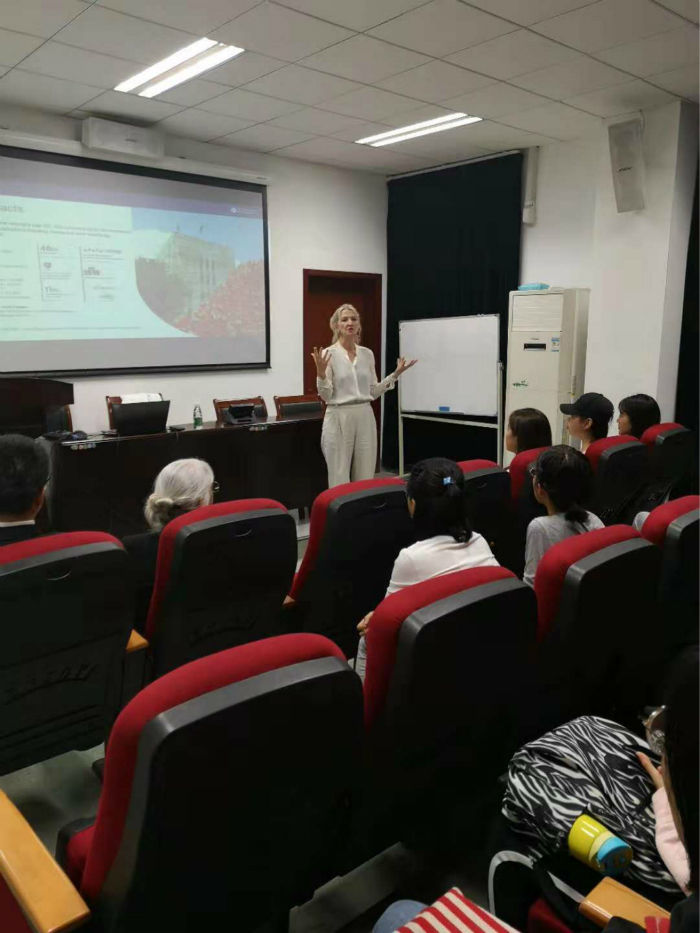 Majella介绍了昆士兰大学的发展概况,师资力量、学校环境、人才培养方案等,并且详细介绍了昆士兰大学与啪啪啦 开展的“2+2”项目的情况,并且就此合作项目给学生提出了一些建议。