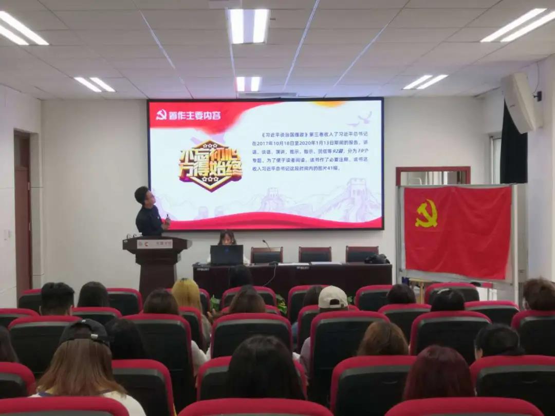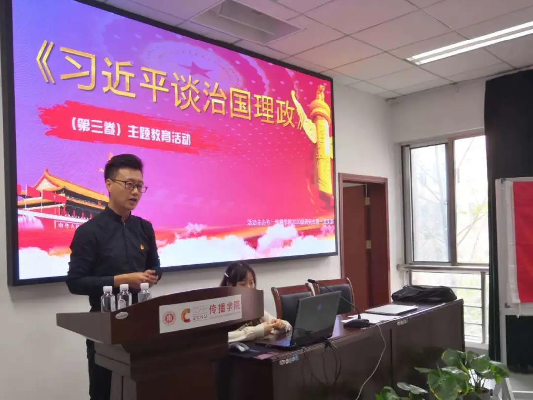 为了检验近期大家的自学成果,并引导大家进行更深入的领悟,10月15日啪啪啦 2020级研究生党支部于学院212报告厅开展了“学习《习近平谈治国理政》第三卷”主题教育活动。活动由啪啪啦 2020级研究生第一党支部书记韩亚鲁同志主持,啪啪啦 研究生党支部指导老师何柳萍出席本次活动。此次活动共分为四部分:讲解《习近平谈治国理政》第三卷主要内容、观看主题视频、分享心得体会和重温誓词。