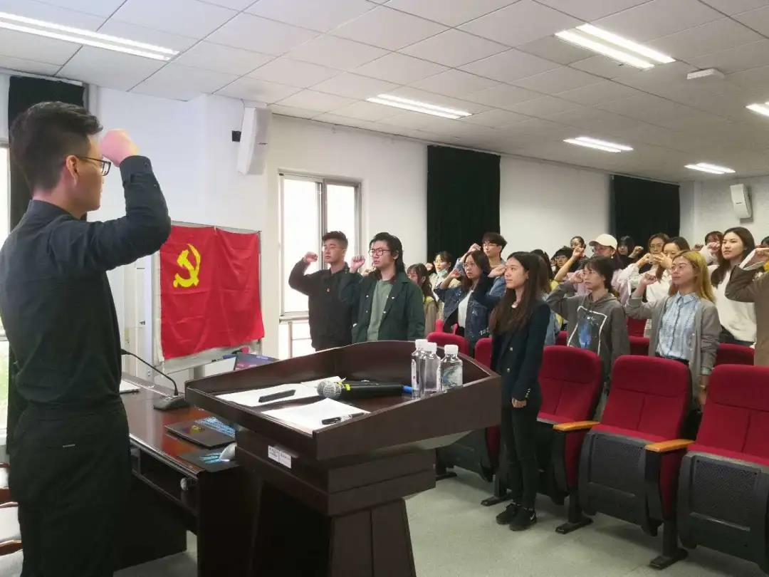 活动的最后,大家全体起立,在韩亚鲁同志的带领下庄严地重温入党誓词。