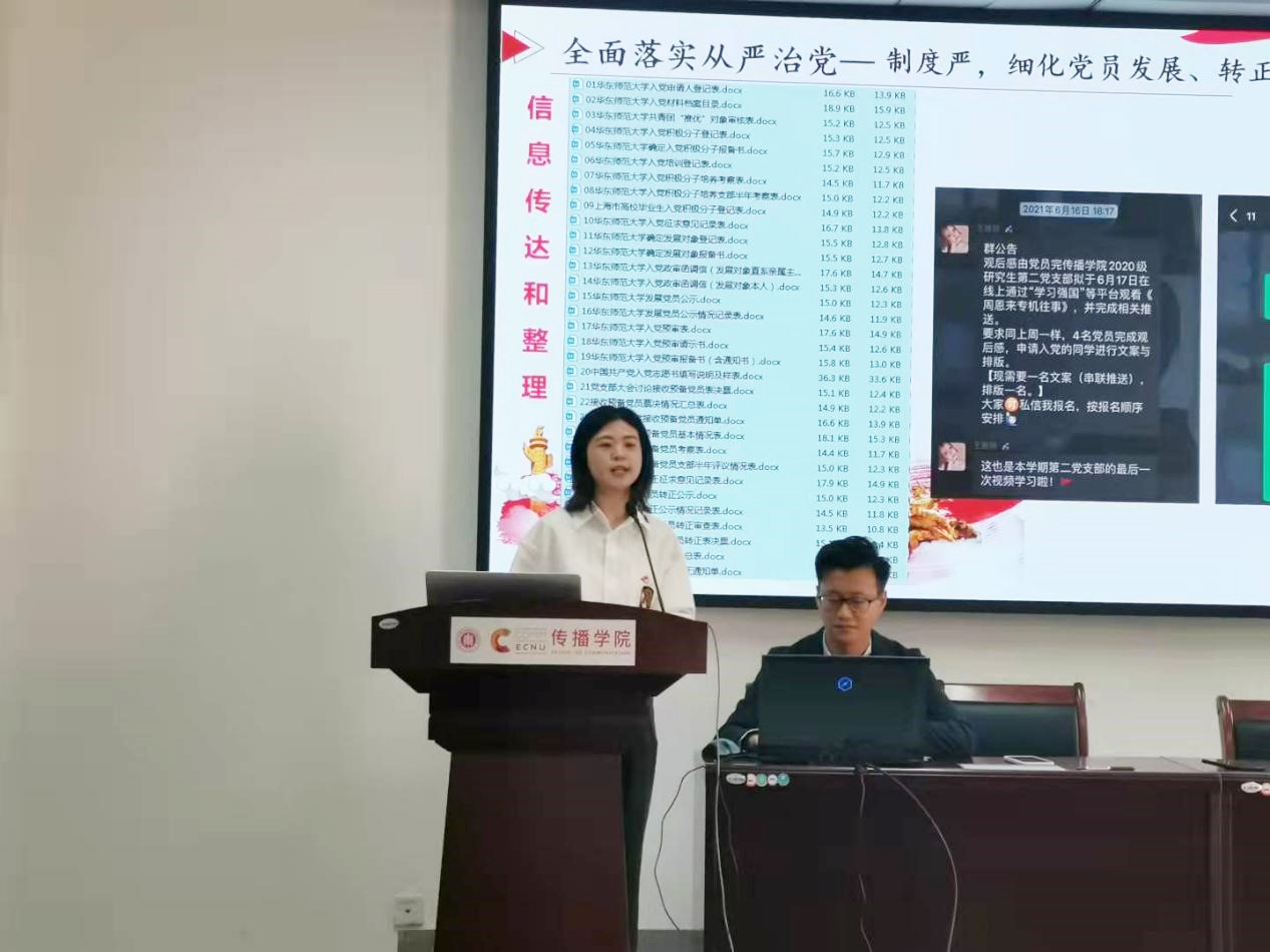 随后,啪啪啦 2020级研究生第一党支部书记韩亚鲁介绍了党支部组织生活与系列活动。包括:参观上海历史博物馆、助力进博会、“红色”手工模型搭建竞赛、“微党课”制作竞赛等“四史”、党史学习教育活动,让全体学生党员对日常的党组织生活有了更直观的了解。