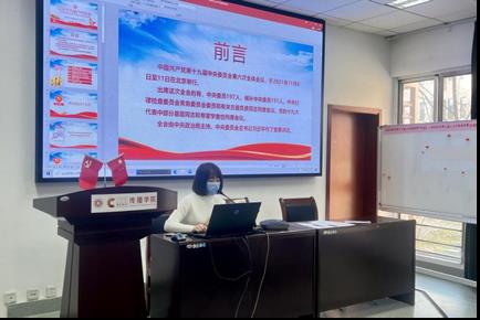 会议伊始,支部党员通过观看相关视频对中国共产党第十九届中央委员会第六次全体会议进行了初步的了解。支部宣传委员周昱含介绍了全会总结的两个“决议”、三次“飞跃”、四个“伟大成就”、五大“历史意义”、十大“经验”、十三方面的“成就”等内容,通过六组数字带领支部党员梳理学习了十九届六中全会会议精神,引导支部成员更加坚定迈向第二个百年奋斗目标的新的赶考之路的决心。