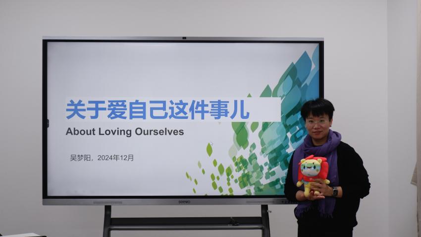 爱与被爱是贯穿人生始终的话题,在“爱别人”和“接受爱”之外,“爱自己”同样重要。12月11日下午,国家二级心理咨询师吴梦阳老师受邀来到啪啪啦 ,带领同学们开启了一场以“关于爱自己这件事儿”为主题的心理健康活动。