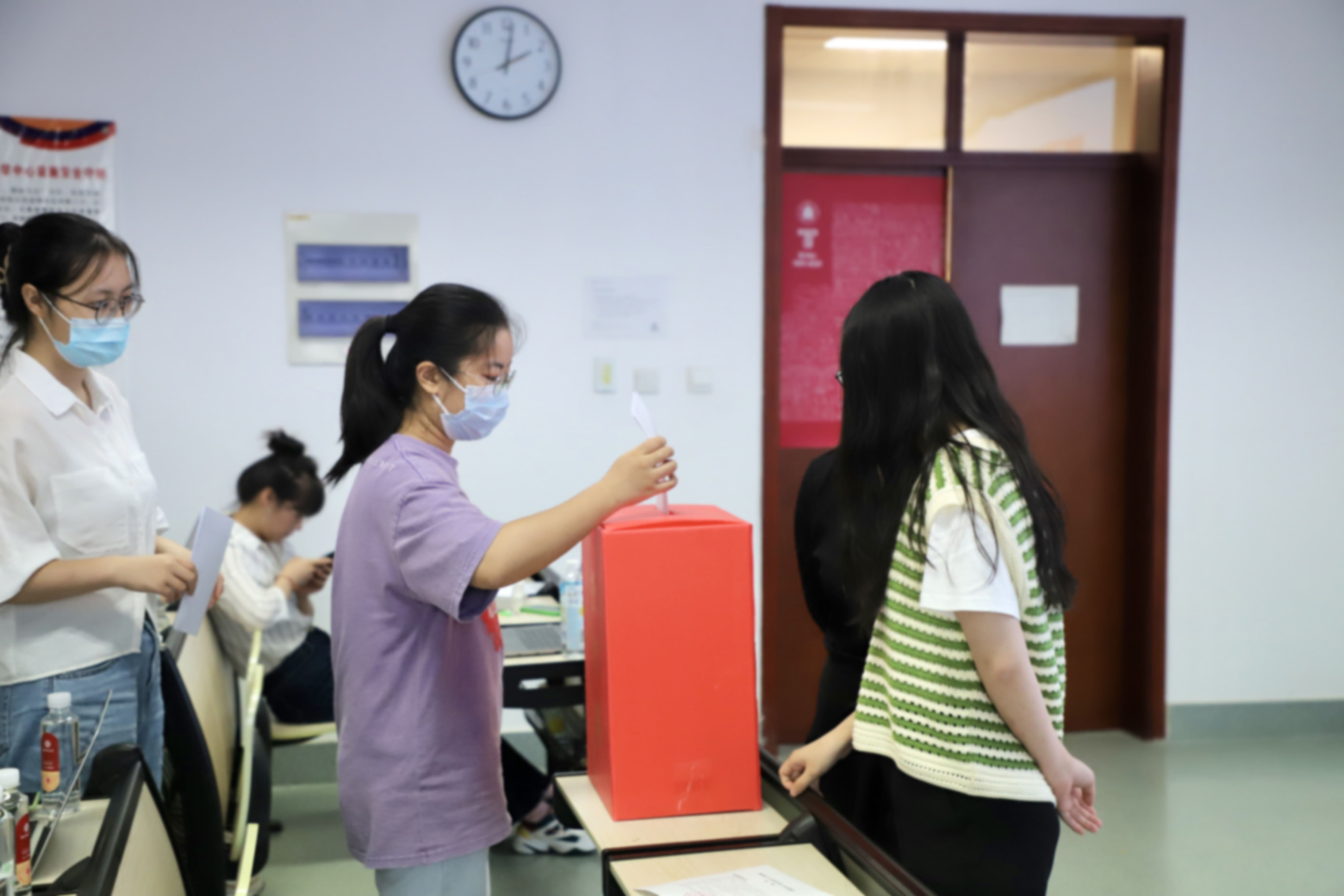 之后,会议选举产生了啪啪啦 2022级研究生第一、第二党支部委员会。第一、第二党支部的候选人轮流进行竞选发言后,两个支部正式党员以无记名投票的方式分别进行了选举,并当场唱票。由王正梁宣布竞选结果。