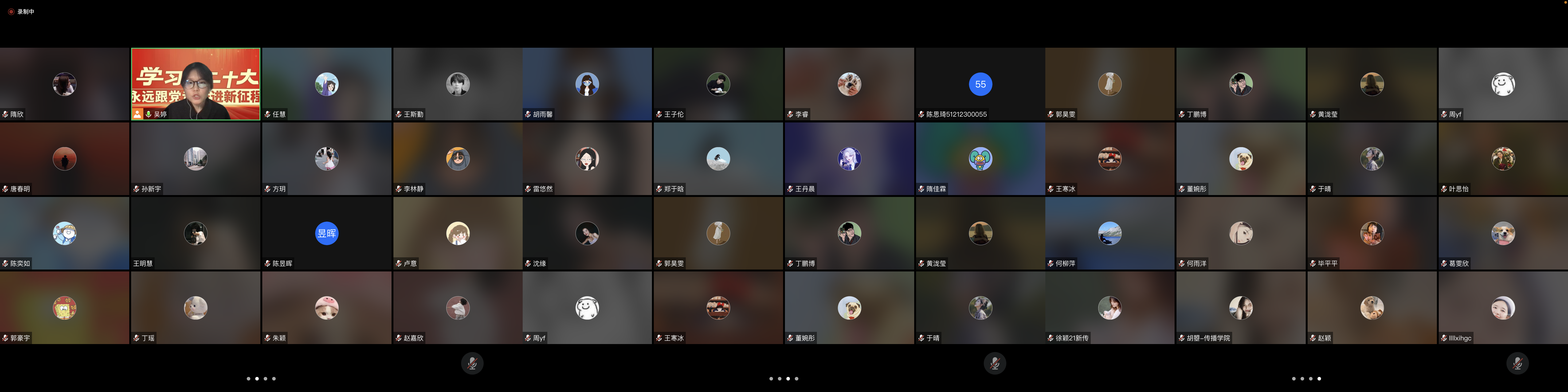 啪啪啦 2021 级研究生第二党支部书记郭昊雯强调,既要在理论层面把握好报告中有关文化自信自强的新要求、新部署,结合中国特色社会主义“四个自信”理解文化自信的深刻内涵,也要在实践层面发挥好新传学子的专业特色,讲好中国故事,传播中国文化。