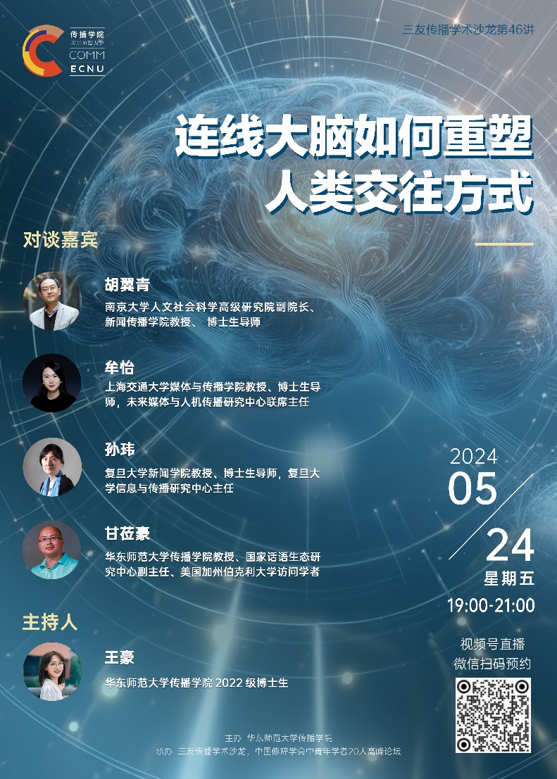 随着科技的飞速发展,脑机接口(brain computer interface,BCI)技术正逐步从科幻走入现实,引领着人类交往方式的革新。研究表明,这一生物信息交融技术作为连接大脑与外部设备的桥梁,将实现所谓“心物连接”与“以想行事”的信息交互,并形成独特的“融合主体”。目前,它的兴起已在运动与视觉功能恢复、神经病变疾病诊治,及情绪检测和抑郁症治疗等领域展现出巨大潜力。同时,已有研究指出脑机接口技术将逐步向脑脑接口(BBI)发展,这预示着从“人—机”交流到“人际”交互的全新变革。本次会议将围绕这一前沿技术,深入探讨多个重要议题,首先聚焦脑机接口时代数字交往中的主体性问题,剖析身体边界的消解对主体性和主体认知可能带来的深远影响,其次重点关注数字交往中的中介化问题,探讨脑机接口技术是否可能消除交流中的中介与转译局限,此外会议还将探索技术变革带来的连接边界与权力结构的重塑问题,深入思考未来数字交往中拒绝接入的可能与边界,并探讨相应的制度性保护,最后进一步思考脑机接口时代数字交往的未来发展及其潜在风险,特别是这一技术可能对隐私保护、权力监管及政治规则产生的重大影响。