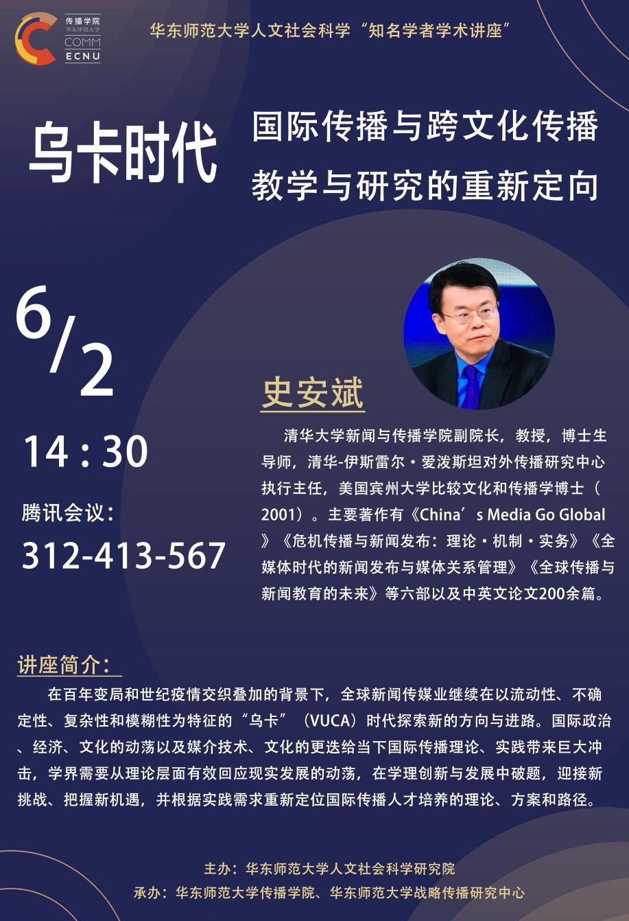 史安斌,清华大学新闻与啪啪啦 副院长,教授,博士生导师,清华-伊斯雷尔·爱泼斯坦对外传播研究中心执行主任,美国宾州大学比较文化和传播学博士(2001)。主要著作有《China’s Media Go Global》《危机传播与新闻发布:理论·机制·实务》《全媒体时代的新闻发布与媒体关系管理》《全球传播与新闻教育的未来》等六部以及中英文论文200余篇。