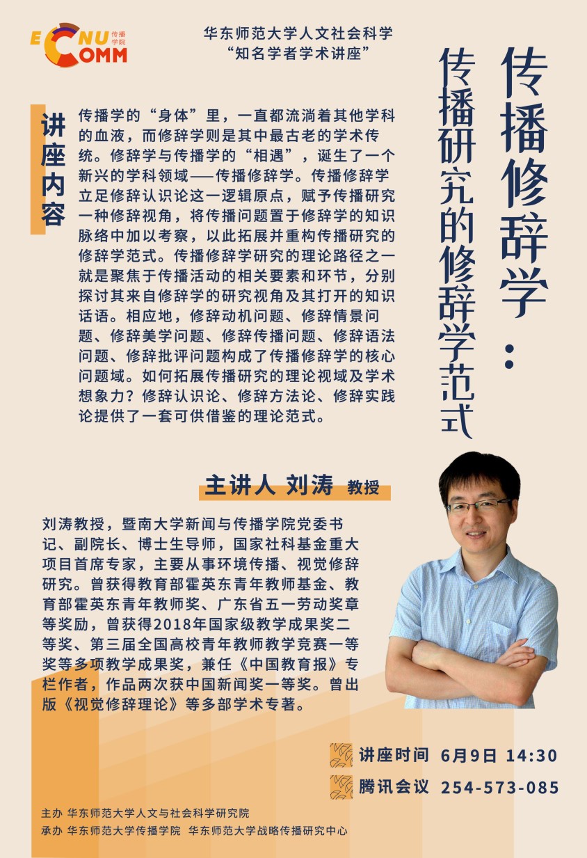 刘涛教授,暨南大学新闻与啪啪啦 党委书记、副院长、博士生导师,国家社科基金重大项目首席专家,主要从事环境传播、视觉修辞研究。曾获得教育部霍英东青年教师基金、教育部霍英东青年教师奖、广东省五一劳动奖章等奖励,曾获得2018年国家级教学成果奖二等奖、第三届全国高校青年教师教学竞赛一等奖等多项教学成果奖,兼任《中国教育报》专栏作者,作品两次获中国新闻奖一等奖。曾出版《视觉修辞理论》等多部学术专著。