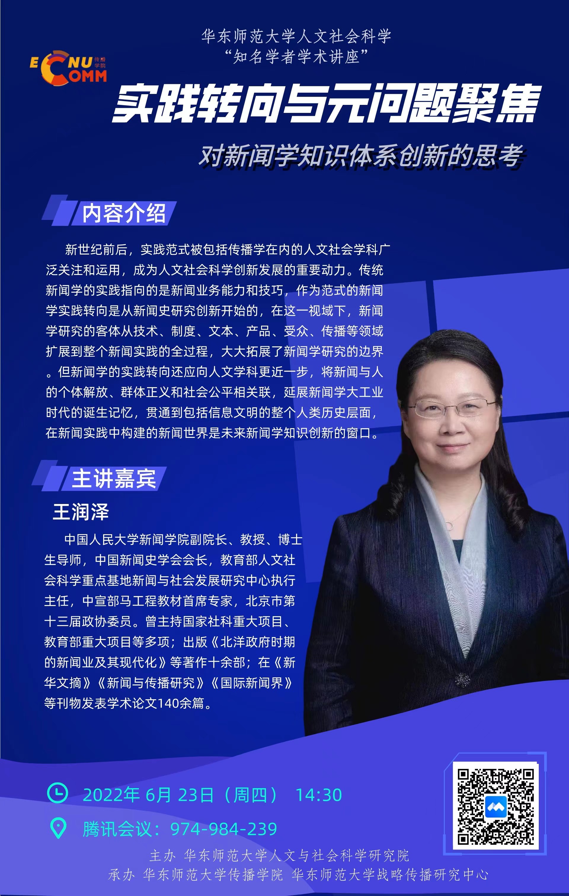 王润泽,中国人民大学新闻学院副院长、教授、博士生导师,中国新闻史学会会长,教育部人文社会科学重点基地新闻与社会发展研究中心执行主任,中宣部马工程教材首席专家,北京市第十三届政协委员。曾主持国家社科重大项目、教育部重大项目等多项;出版《北洋政府时期的新闻业及其现代化》等著作十余部;在《新华文摘》《新闻与传播研究》《国际新闻界》等刊物发表学术论文140余篇。