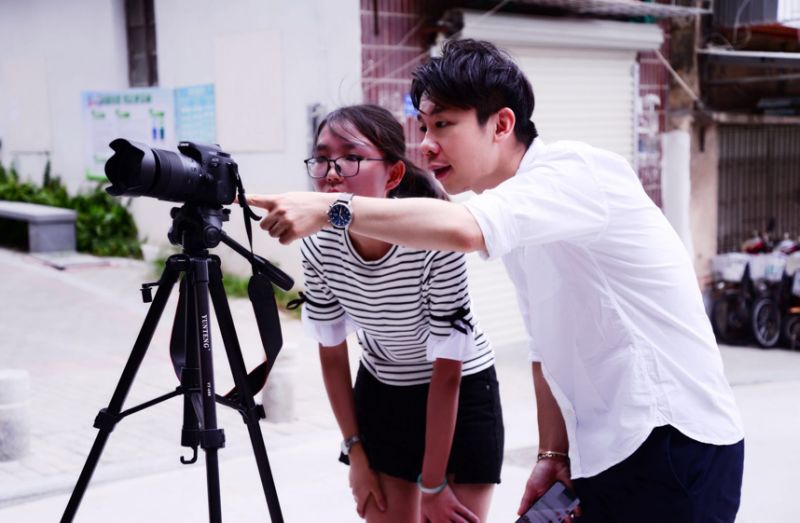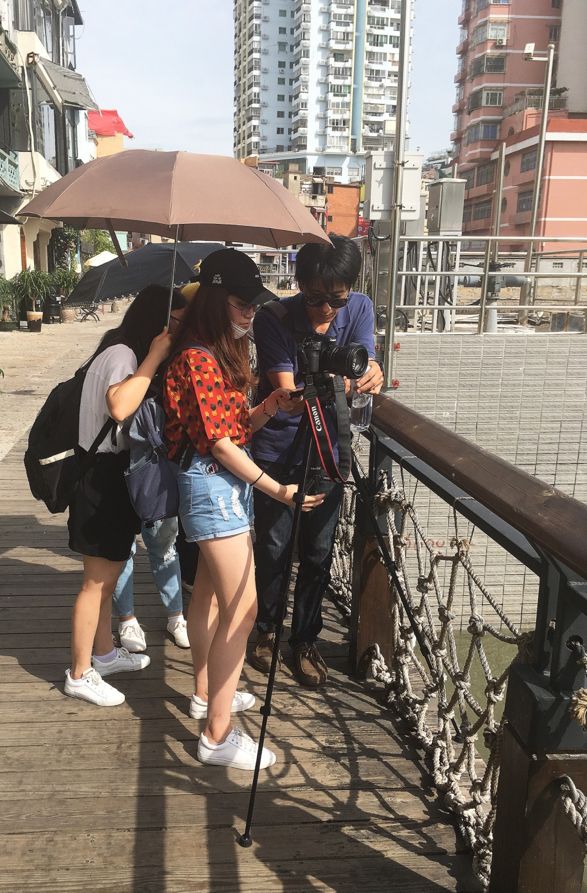 同学们在林哲元老师的指导下拍摄空镜