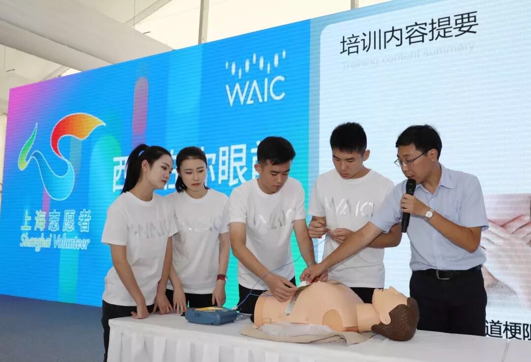 原来,这是2018年世界人工智能大会组委会在对志愿者进行急救知识培训,在此之前,还对志愿者进行了中英文问答及基本礼仪、消防知识培训。