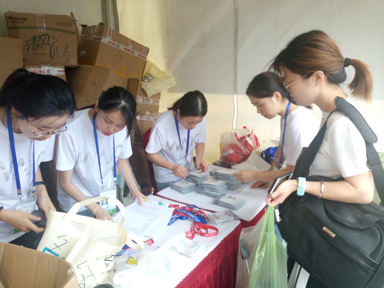 除此之外,媒体对接组的志愿者们还为会场记者装配工具包、大会纪念品等物件,并清点大会中媒体所需各项用品,分箱标记,确保数量准确。大会开幕之前,媒体对接组还需将近700张媒体证、领导证、嘉宾证一一分类,并发放到位。