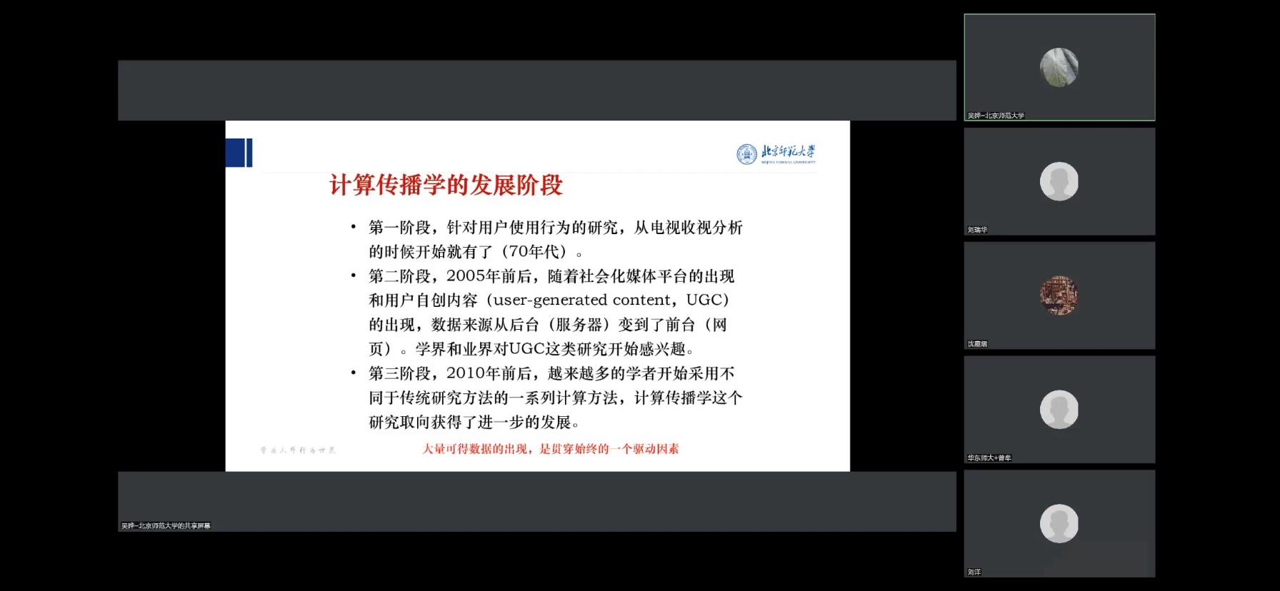 2023年4月12日下午,啪啪啦 “博思论坛·超越传播研究的十字路口”讲座在线上成功召开,北京师范大学新闻啪啪啦 吴晔教授围绕“当传播学遇到数据”这一主题展开讲座,啪啪啦 沈嘉熠教授担任本次讲座主持人,逾百位专家学者、学生在线参与。