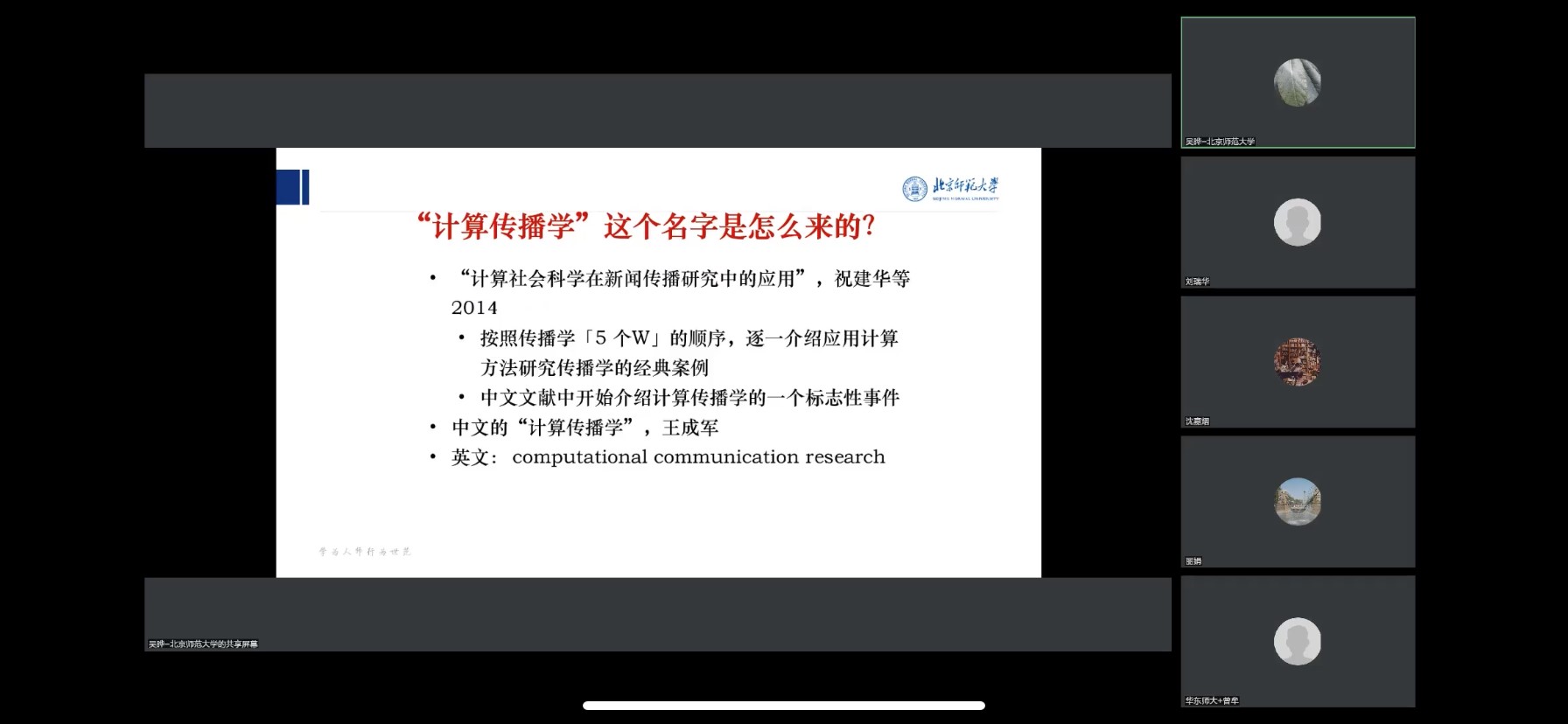 此次讲座吴晔老师主要从“计算传播学”的角度出发,结合北京师范大学计算传播学研究中心的若干研究实例,着重进行了三方面的论述,即计算传播学的起源、与传统量化研究的异同以及计算传播学的研究思路。