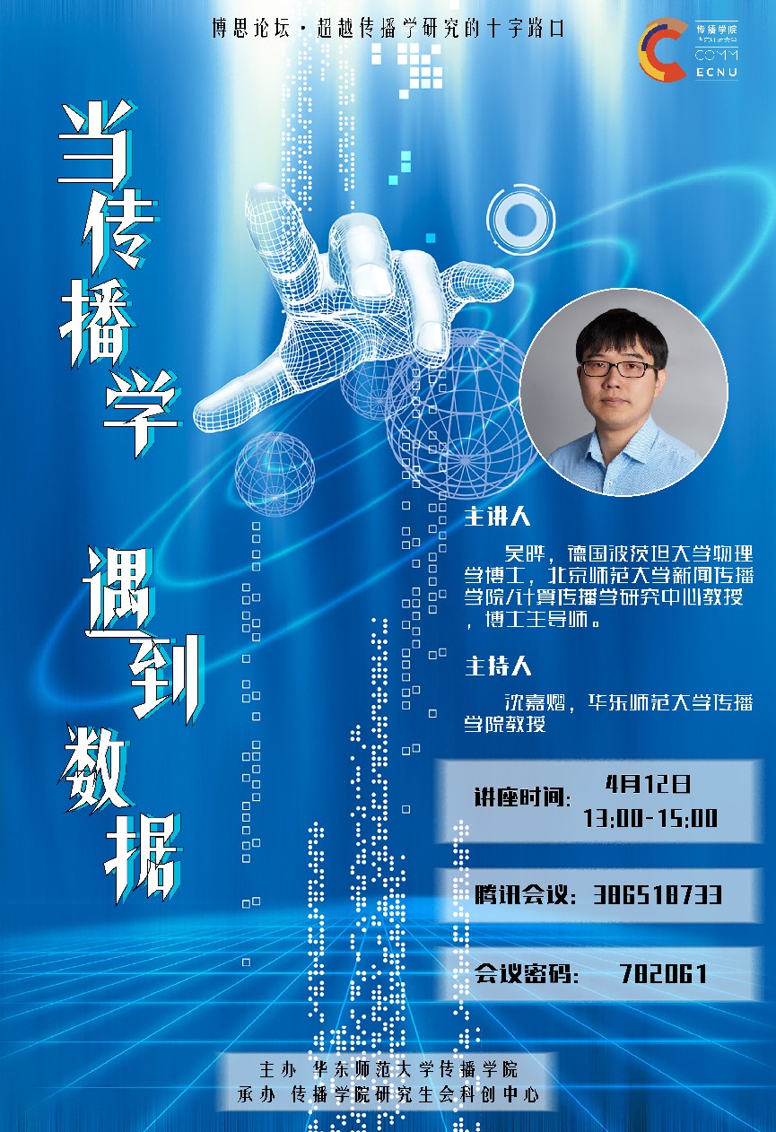 传播学是研究人类一切传播行为和传播过程发生、发展的规律以及传播与人和社会的关系的学问。常见的经典研究方法分为定性分析和定量研究,定性分析通常包含民族志研究法,深度访谈法等,定量研究通常包含抽样调查法,内容分析法,控制实验法等。近年来数据科学的发展为传播学的研究注入了新的活力,诞生了一个新的研究方向---计算传播学。本报告将结合北京师范大学计算传播学研究中心的若干研究实例,介绍自然科学的技术进展在传播学里的可能应用。
