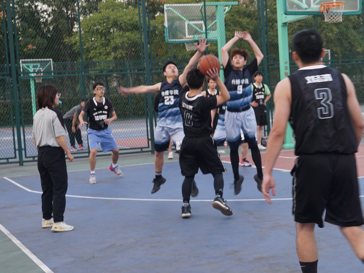 比赛进行到上半场尾声阶段,双方逐渐找到了状态,胶着于篮下,我院球员与对方球员不断起跳抢夺篮板,你来我往,最终我方球员设法摆脱防守,一气呵成,瞬间连进两球。