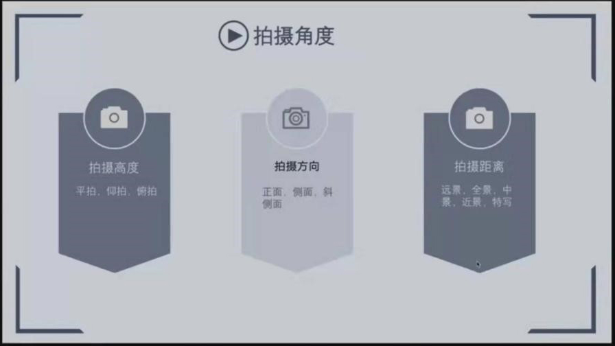 最后,余成同学分享了拍摄角度的技巧,包括拍摄高度、拍摄方向和拍摄距离的选择。在拍摄高度上,平角度会给人一种平和沟通的感觉,也会突出人物的面部特征等细节。仰角度拍摄,不仅可以拍到人物,使得人物更加高大,还可以带到周围环境,画面显得更加恢弘。俯拍角度会交代画面的环境和人物,也会显得人物更加娇小。在拍摄方向上,采用侧面角度去拍,会将人物轮廓突出,如果是背面角度的话,可以将光圈开小,制造氛围,留下神秘感。拍摄距离也就是常说的远景、全景、中景、近景和特景,拍摄时需要根据实际需求进行选择。