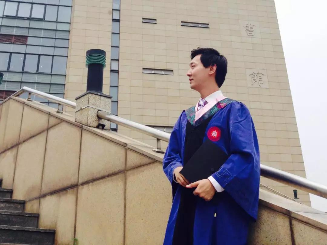 硕士毕业前,赵梦然在师大闵行校区图书馆前