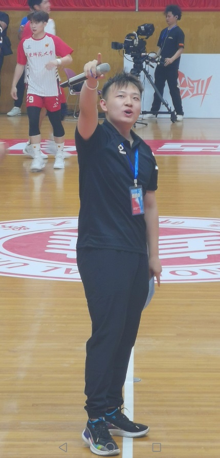 其中,全场比赛的MC(即Microphone Controller,篮球比赛现场主持人,主要烘托带动现场气氛的人)更是自始至终充满热血、活力和温情,激情洋溢的现场解说和气氛营造给全场师生和校友留下了深刻的印象,也充分体现了华东师大良好的精神风貌和主场热情。这位全场最炫“助攻”,就是我院播音主持艺术专业17级校友、目前就读于中国传媒大学播音主持艺术学院硕士研究生的王铸同学。