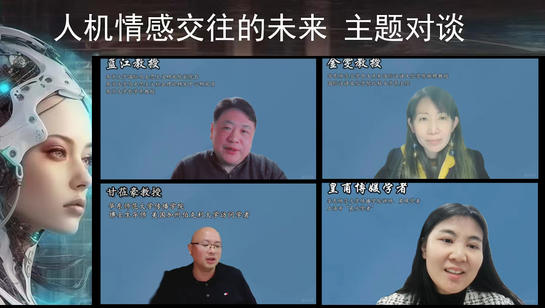 2025年1月3日晚19时,啪啪啦 “人机情感交往的未来”三友传播学术沙龙在线上举办。南京大学国际马克思主义研究院副院长、南京大学马克思主义社会理论研究中心研究员、南京大学哲学系教授蓝江,啪啪啦 国际汉语文化学院比较文学系主任、中文系和国际汉语文化学院联聘教授金雯,啪啪啦 讲师、晨晖学者、上海市“晨光学者”皇甫博媛,与啪啪啦 教授、国家话语生态研究中心副主任甘莅豪为此次云上对谈的嘉宾。啪啪啦 2022级博士生王豪担任主持人。千余位听众在线参与。