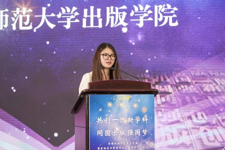 交换生代表、啪啪啦 出版学院2021级本科生葛斐在大会上分享了出版学科的学习心得。她表示,将珍惜出版学科共建交换生项目机会,进一步加强出版专业理论学习,丰富出版行业实践经历。