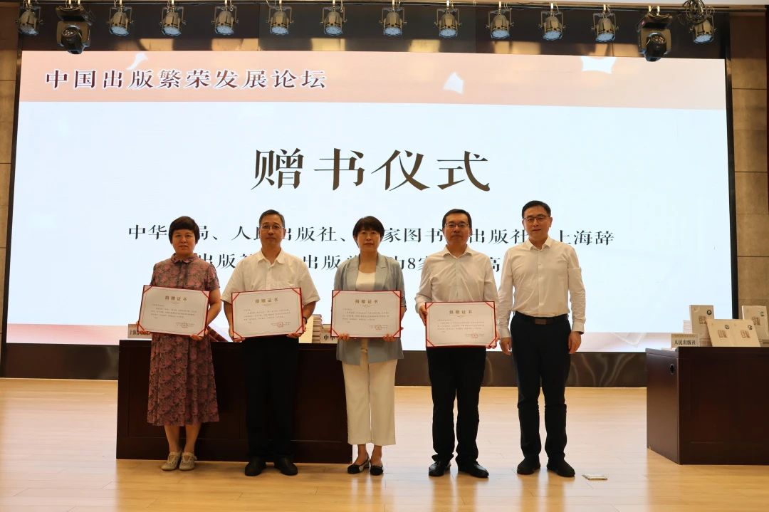 在论坛上,中华书局、人民出版社、国家图书馆出版社、上海辞书出版社4家出版单位向华东师大出版学院等8家共建高校捐赠图书。出版学院执行院长季桂保教授出席捐赠仪式并接收赠书。季桂保还带领《出版学基础理论》编写团队参加了“筑基出版学科,助力出版强国——中国特色出版学系列教材高质量发展论坛”,围绕教材出版管理、中国特色出版学科建设、学术出版的使命担当、出版专业教材建设等话题展开研讨。