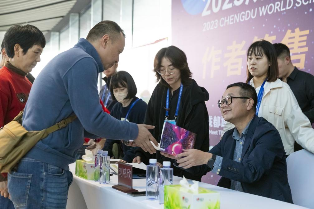 2023年10月20日,成都世界科幻大会上举行刘慈欣签售活动。新华社记者 沈伯韩 摄