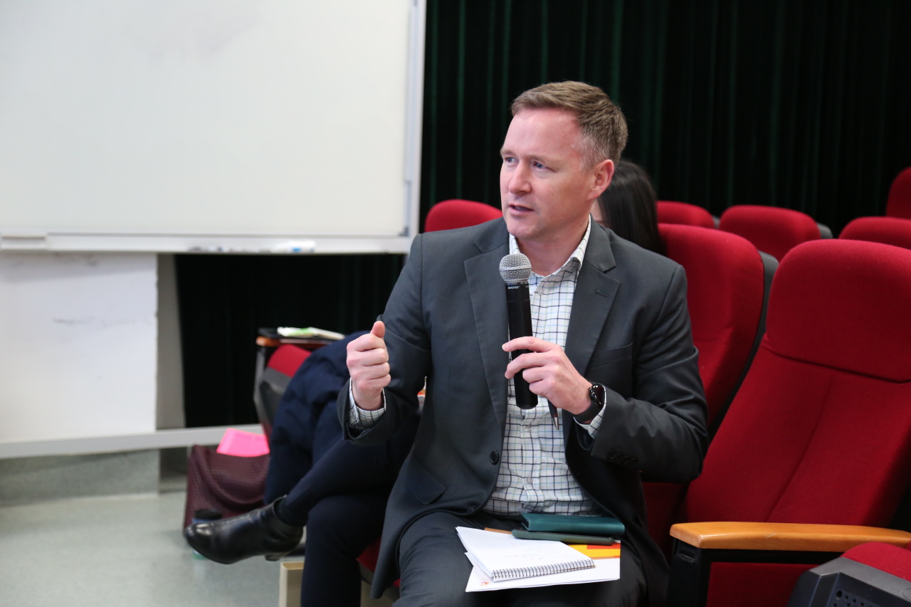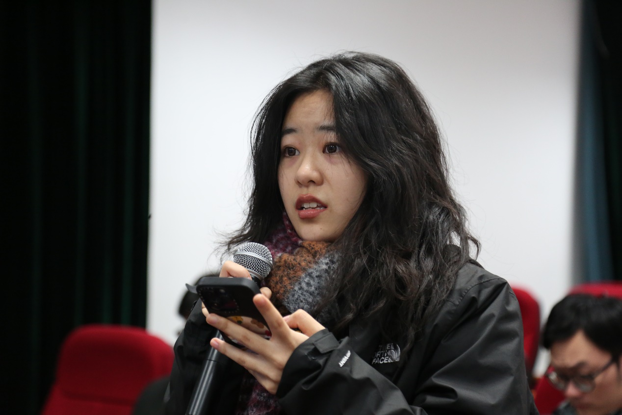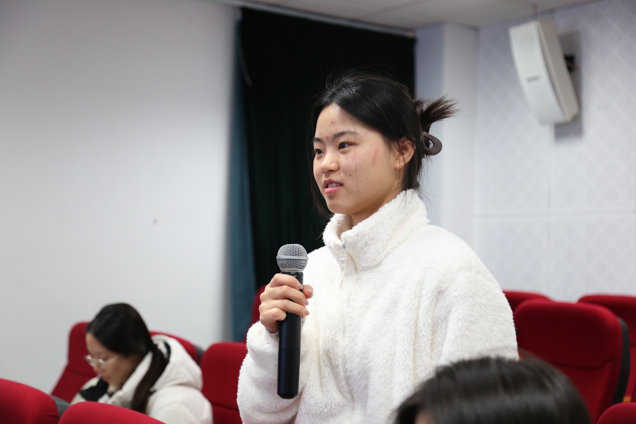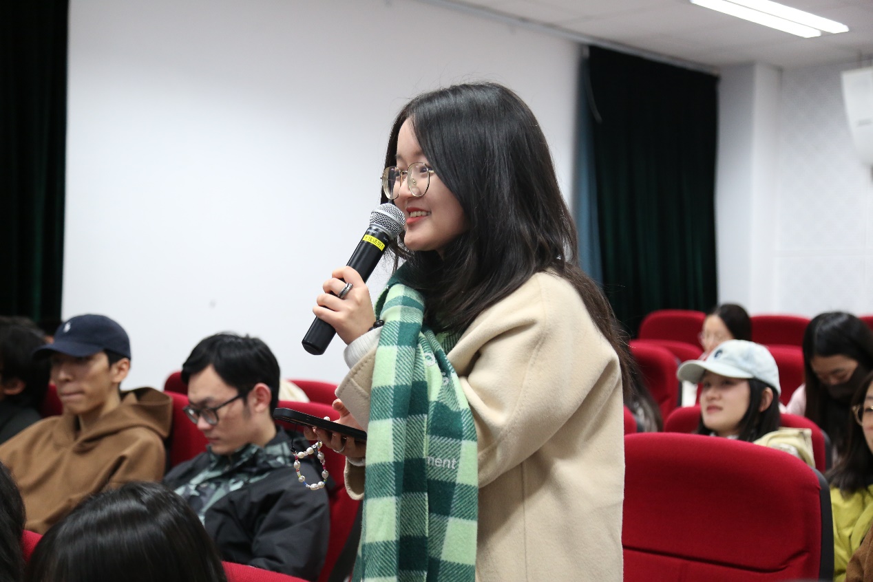 讲座结束后,Ellen Horne与鞠薇副教授进一步互动讨论,详细回应了同学们关于播客行业变迁与发展的提问,包括人工智能在音频制作中的应用对播客行业的影响等多个议题,并与包睿渊先生共同交流对于播客发展的前沿思考。