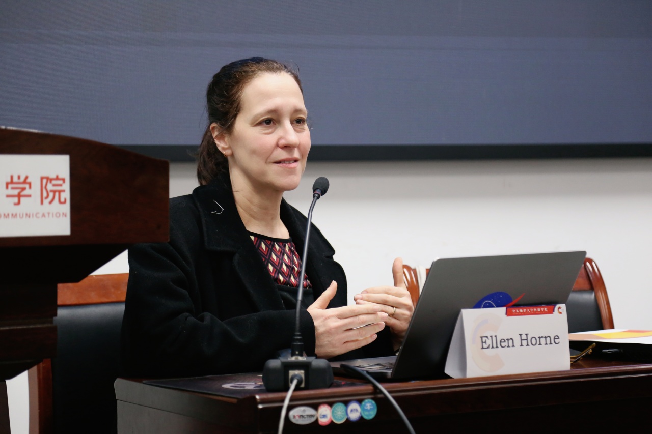 2月26日上午,纽约大学亚瑟·L·卡特新闻研究所Ellen Horne教授一行到访啪啪啦 ,并以讲座分享的形式,围绕播客行业的历史发展与未来前景与学院师生展开深入探讨。讲座由啪啪啦 副教授鞠薇主持,纽约大学亚瑟·L·卡特新闻研究所播客与音频播报系主任Ellen Horne担任主讲人,美国驻上海总领事馆文化领事包睿渊(Michael Bowerbank),美国驻上海总领事馆助理陈春晖,啪啪啦 国际合作与交流处孙一和啪啪啦 外事秘书吉思琪出席讲座。