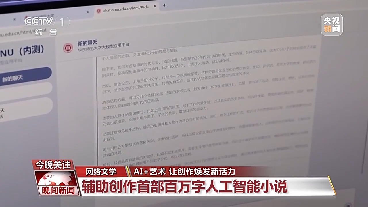 在文学领域,AI也提供了全新的写作模式。日前,啪啪啦 用AI以“人工智能大语言模型+提示词工程+人工后期润色”的方式,创作出国内首部百万字人工智能小说。人工设计故事框架、提示词,AI完成人物关系图谱、批量段落写作、完善故事细节。一位勤奋的写手,全年无休写作完成这样一部作品需要一年半,而用AI的方式只需要一个半月。