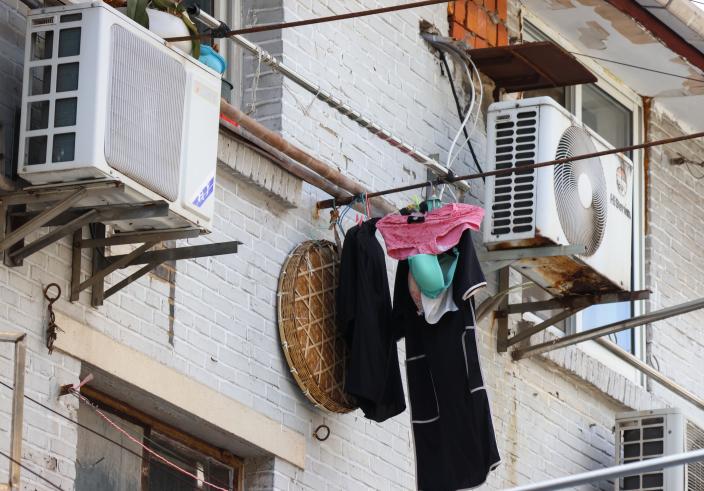 因为一楼没有晾衣架,市民选择将衣服挂在户外的绳子或公共晾衣架上