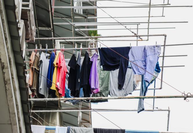 当看到一件件洗好的干净衣服被挂出窗外,生活的充足仿佛从窗户溢出,借着这些长长的晾衣架,向远处延伸……