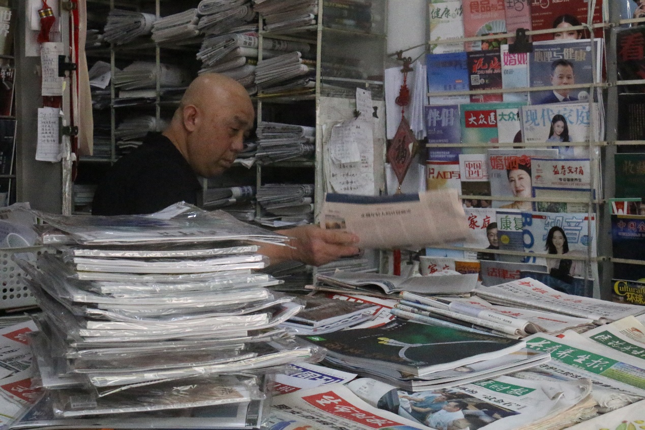 有一个顾客让姜俊印象深刻。他每周来一次,每次买几十份报纸,带回去给老人看,或许是养老院,或许是社区,姜俊没多问,他觉得这是人家的隐私。“老人玩不来手机,但戴上老花镜能拿着几张报纸看一天,有的晚上不看报纸睡不着觉”,姜俊说,“老人看完报纸家里年轻人和小孩可能都会看,这样我就一下服务了三代、四代人”。