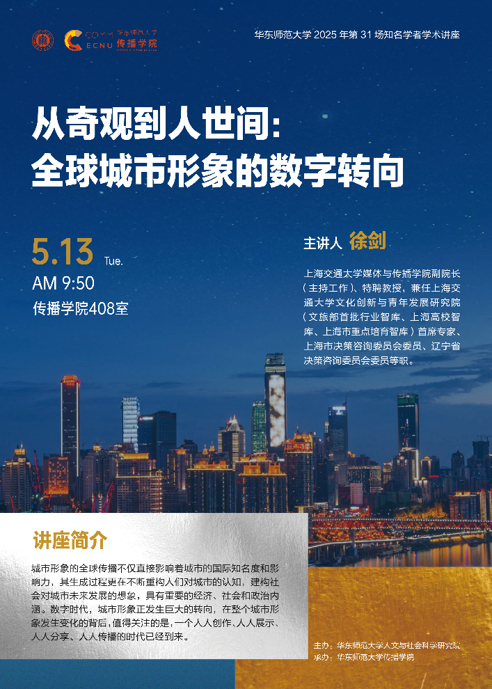 城市形象的全球传播不仅直接影响着城市的国际知名度和影响力,其生成过程更在不断重构人们对城市的认知,建构社会对城市未来发展的想象,具有重要的经济、社会和政治内涵。数字时代,城市形象正发生巨大的转向,在整个城市形象发生变化的背后,值得关注的是,一个人人创作、人人展示、人人分享、人人传播的时代已经到来。
