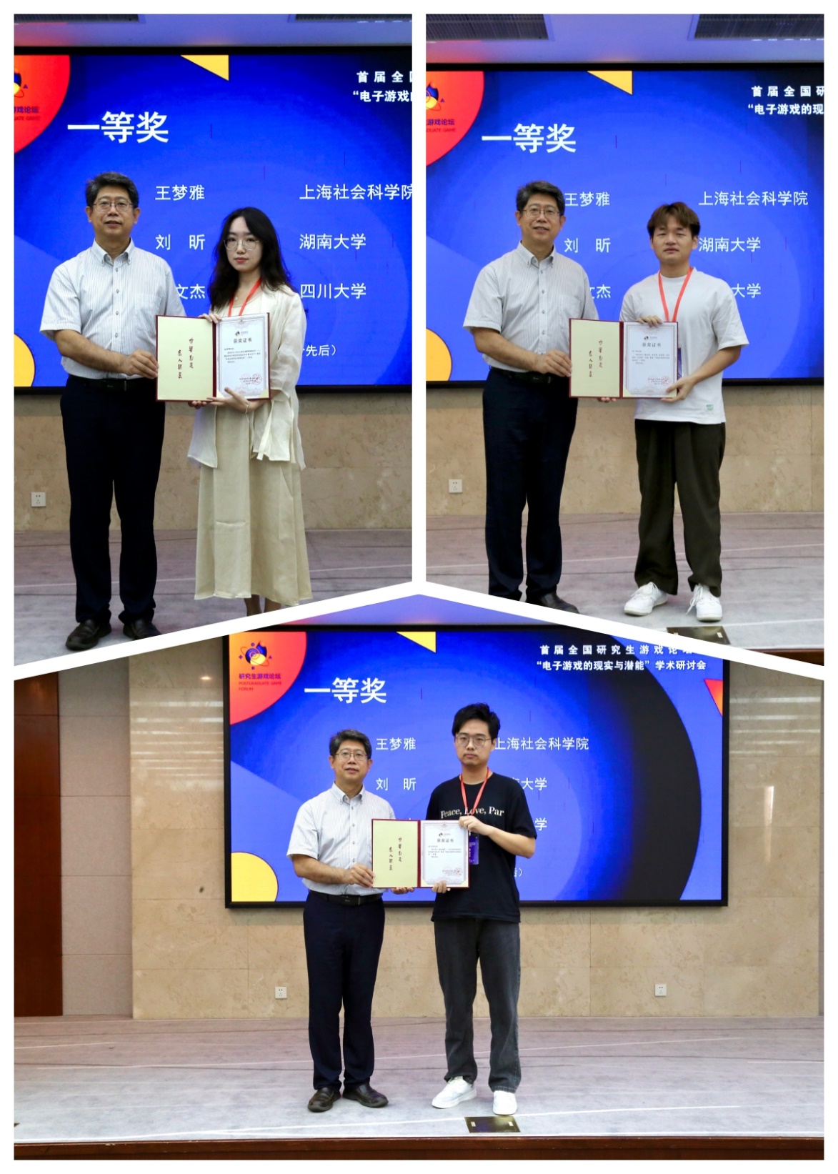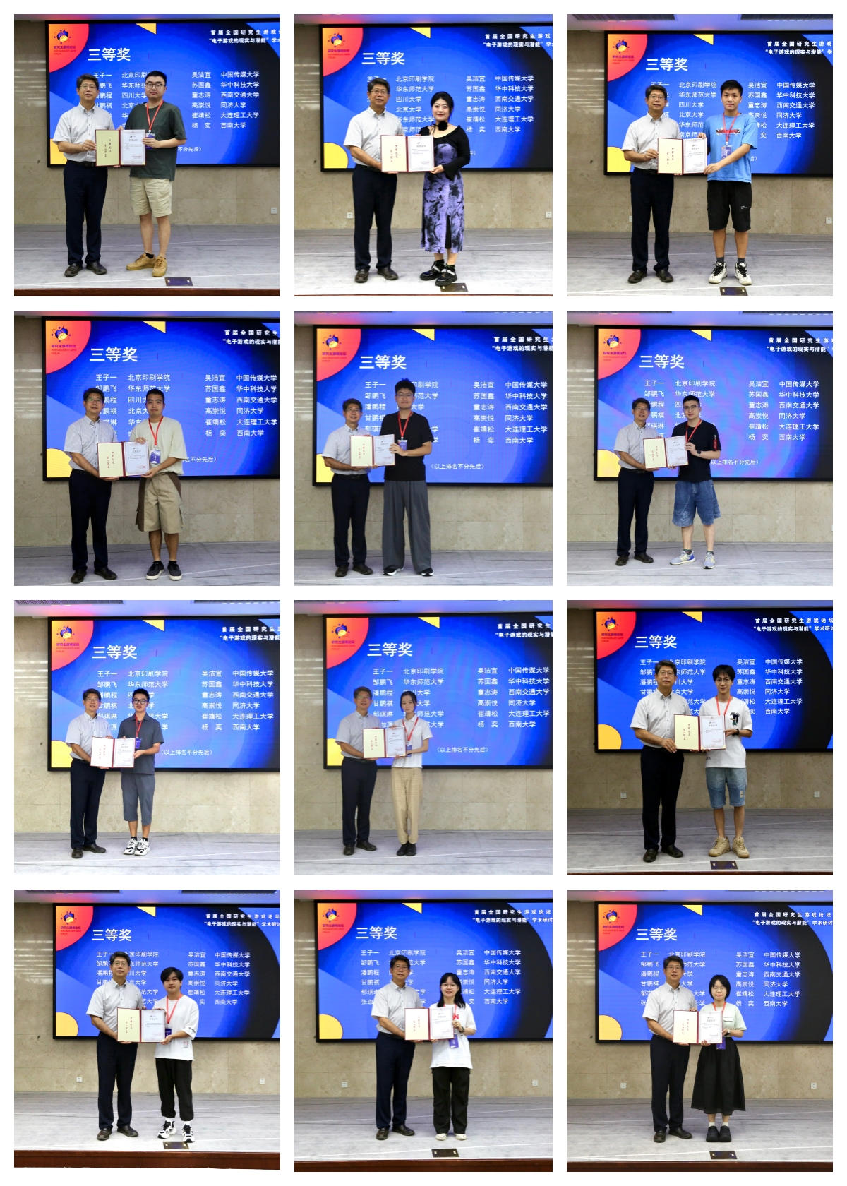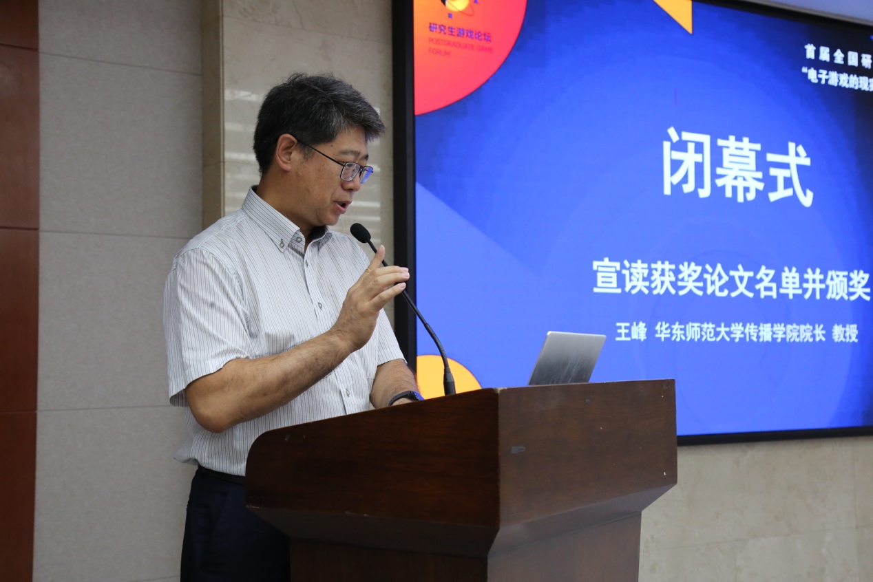 为了鼓励青年学子,本届游戏论坛组建了专家委员会,对投稿论文进行评审。从研究生论文中评选出了22篇获奖论文,予以奖励。啪啪啦 院长王峰宣布了获奖结果并主持了优秀论文颁奖仪式,对各位专家学者的到来表示感谢,并希望通过这样的平台,能够进一步推动游戏研究的建设与发展,会议圆满闭幕。