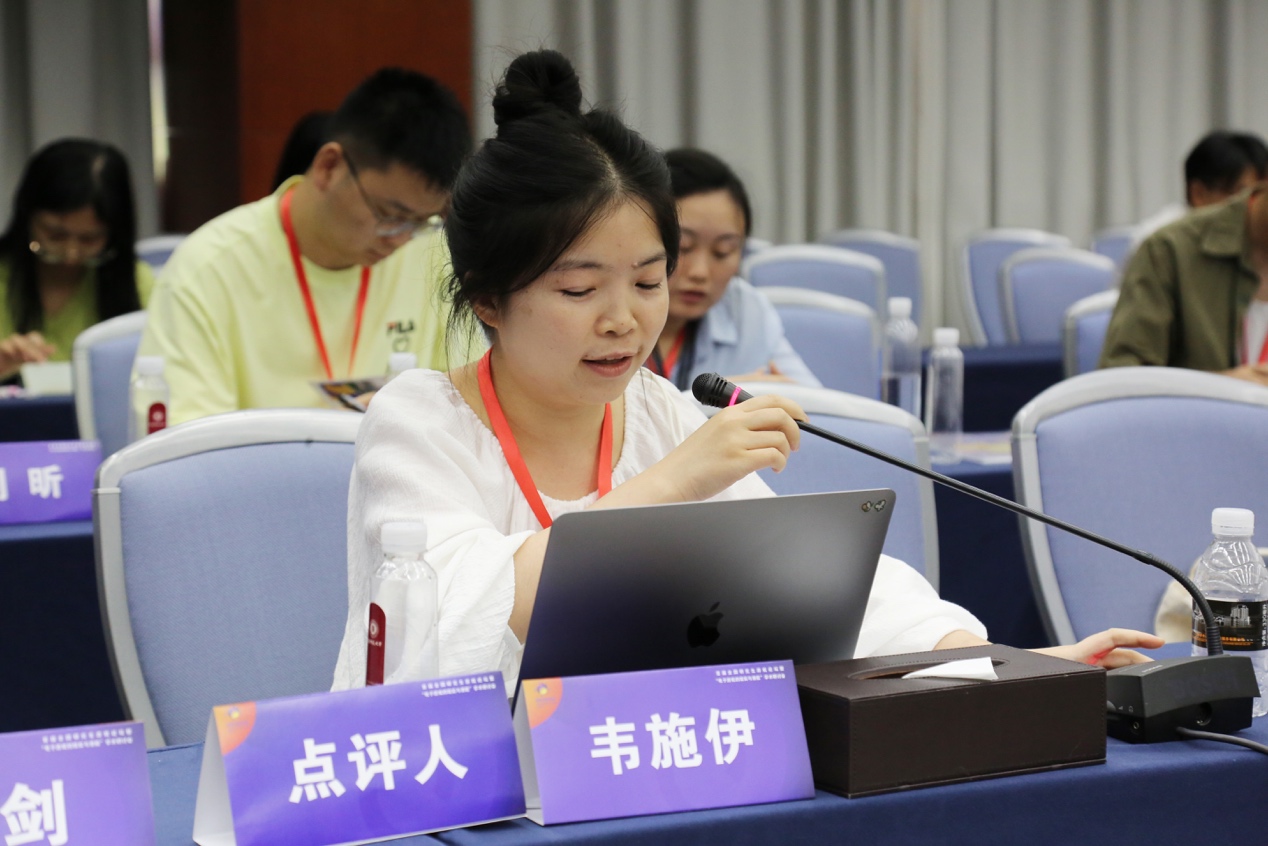 下半场由啪啪啦 中文系博士研究生刘家夷主持,广州大学人文学院讲师韦施伊老师点评。汇报中,詹莉琦运用“节奏分析”探讨了玩家身体异化及其调整过程;杨奕讨论了元宇宙中身体问题的多维度以及对人工智能的价值追求;李香桦将“虚构悖论”引入游戏,强调了游戏创造的虚拟身体对身份的影响;李玫萱认为电子游戏扩展了电影身体的概念,通过游玩过程激发全身感知;罗宇昕关注数字时代主体性冲突对现实身体的影响,并提出促进青少年健康身体观念的建议;潘鹏程则提出电子化身作为主体观察者的概念,认为这有助于自我生命的安顿。韦施伊老师肯定了汇报人对分析考察对象的细致区分,赞赏本组汇报人在捕捉关键概念上的敏锐性,并对汇报人提出了加强研究结论的要求。
