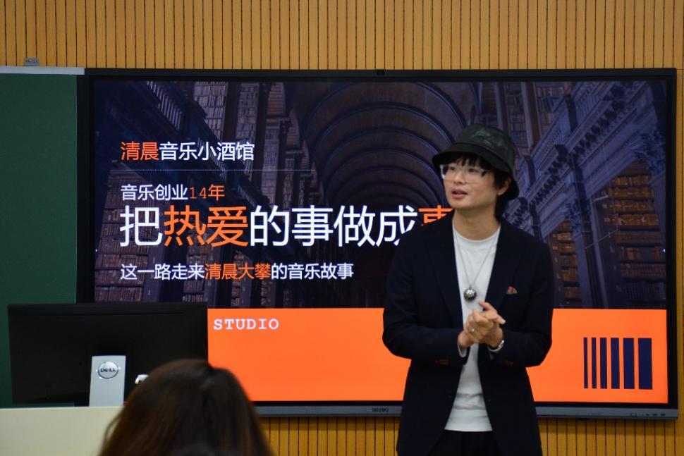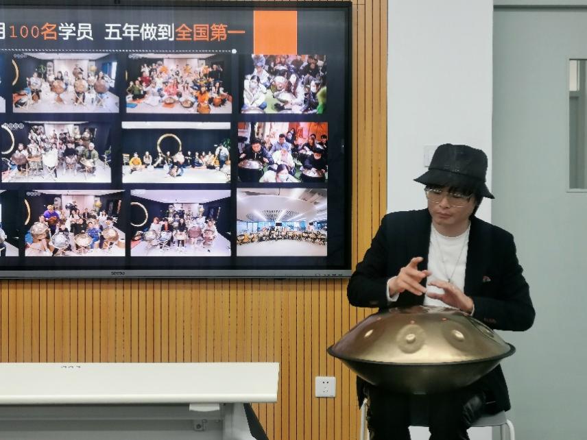 在学习手碟的过程中,清晨大攀洞察到上海手碟授课人较少的市场缺口,合作创立了第四个品牌——申田由甲(CityYoga)。清晨大攀认为,“小众和大众之间的关系只差了一层窗户纸”,目前看来小众的手碟也有很大可能在未来成为流行乐器。他希望品牌从上海这座城市出发,兼具田园与自由的因素,并确立了五年内做到全国第一手碟品牌的目标。目前,申田由甲已经有49个班的学员,通过学员学费与手碟销售的商业模式使音乐变现。在讲座现场,清晨大攀现场表演了两首手碟曲目,使同学们能够亲身感受手碟的独特魅力与极强的社交属性。s