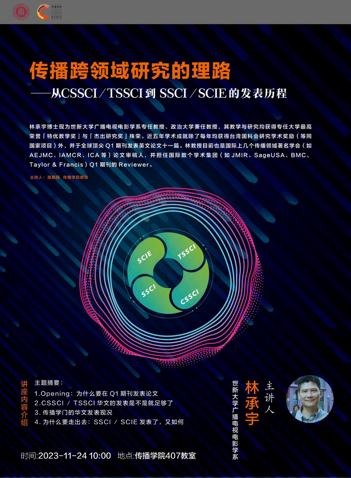 讲座预告 | 林承宇:传播跨领域研究的理路 - 从CSSCI/TSSCI到SSCI/ SCIE的发表历程