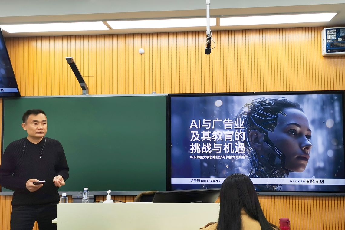 11月21日下午,知名创意广告人、wicked创始人兼首席讲师余子筠结合丰富的行业案例,为同学们讲解AI与广告业及其教育的挑战与机遇。本次讲座是2023-2024学年秋季学期“创意经济与传播专题讲座系列”的第三讲。
