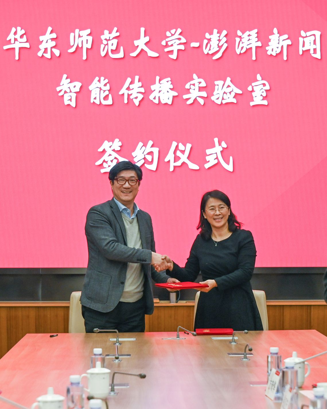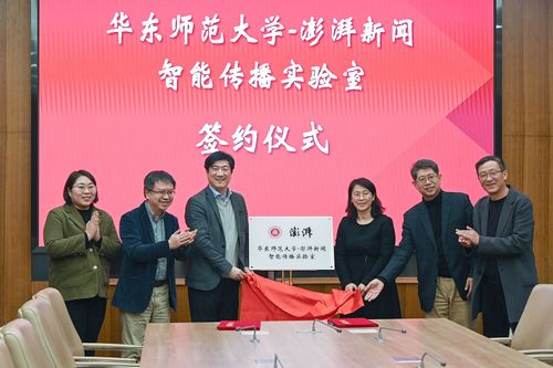 2023年11月23日下午,啪啪啦 与澎湃新闻携手建立的“啪啪啦 -澎湃新闻”智能传播实验室签约仪式在啪啪啦 (中山北路校区)办公楼小礼堂举行。