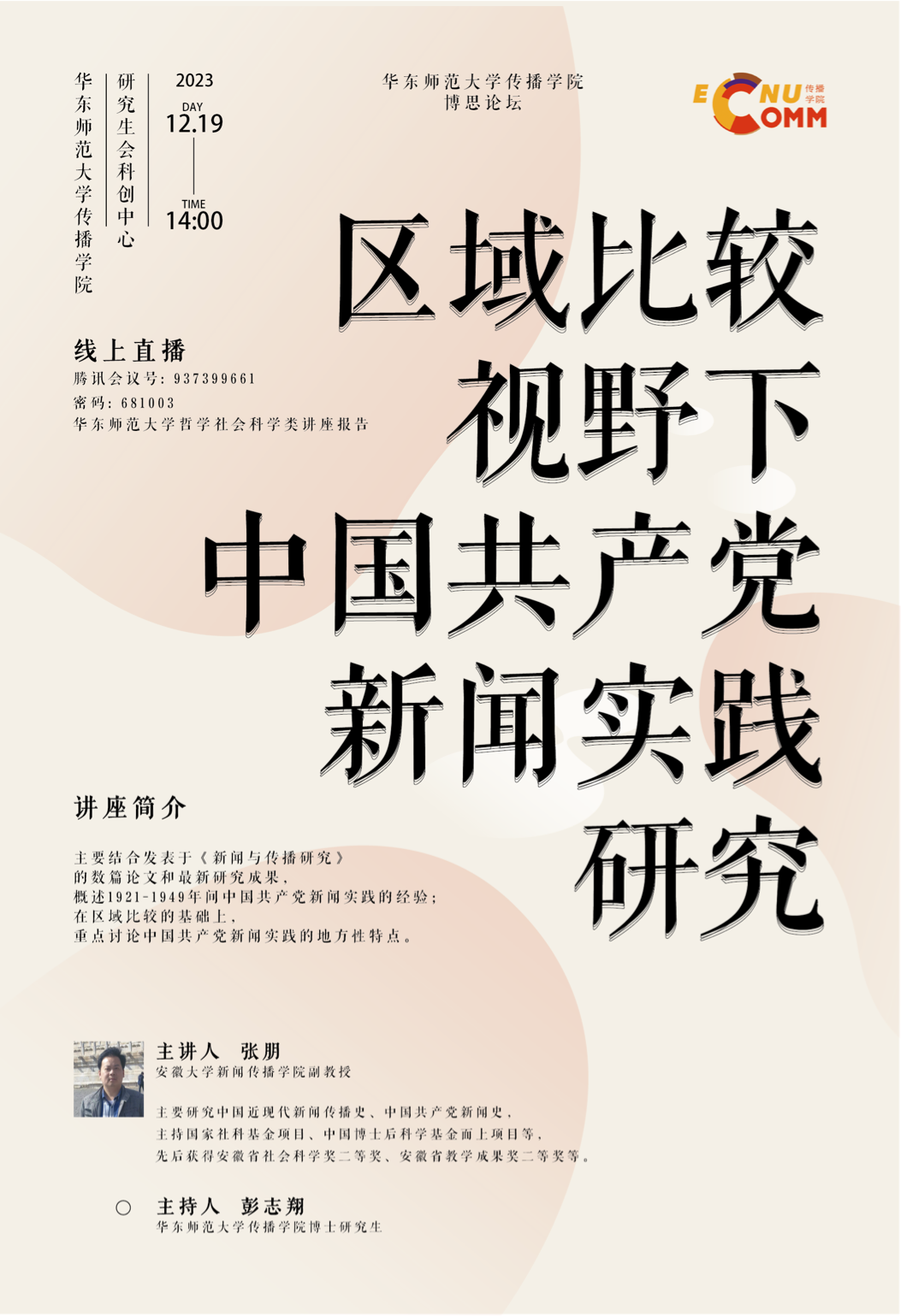 讲座预告 | 张朋:区域比较视野下中国共产党新闻实践研究