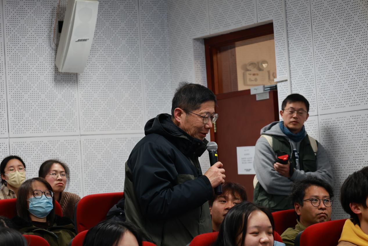 各专业学生外,还吸引了包括哲学、历史学、人类学、社会学、体育学等众多院系专业的学子参与、讨论。在问答环节,同学们结合自身专业与创作经历积极提问。周浩基于自己丰富的拍摄经历和创作思考,一一做出详细回答。其间,啪啪啦