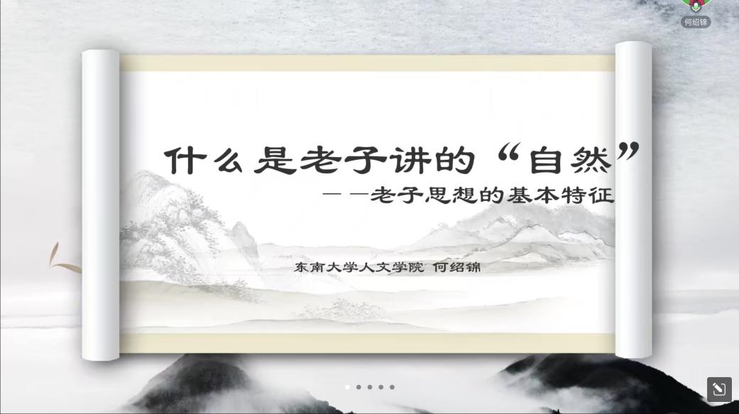 1月19日下午,北京大学哲学博士、东南大学人文学院讲师何绍锦开展题为“什么是老子讲的‘自然’——老子思想的基本特征”线上读书讲座,对老子基本思想进行了概述。本次读书讲座活动是啪啪啦