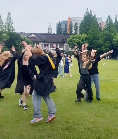 张浩2023年刚刚从复旦大学国际新闻传播专业研究生毕业,这段视频拍摄于他们拍毕业照当天。视频中,张浩和另外几个FDanso舞社的朋友穿着硕士服,在操场上随着音乐的节奏热烈的舞动,每个人的脸上都洋溢着笑容。很难想象,这样一个青春浪漫的视频的评论区却充斥着那样的血雨腥风。