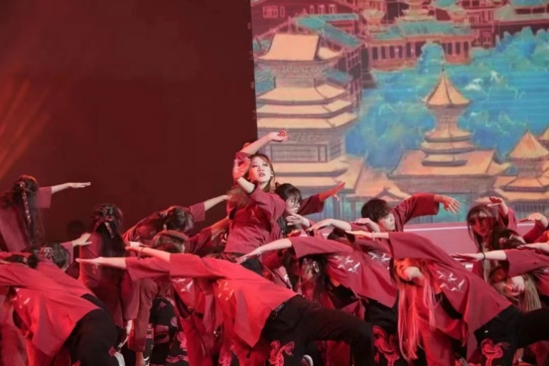 12月24日,已经参加工作的张浩又回到校园,参加了FDanco的年末舞台。同一天,凌晗带领社员们参加了2023上海市学生阳光体育联赛,演绎了原创编舞《飞天》并获得了一等奖。