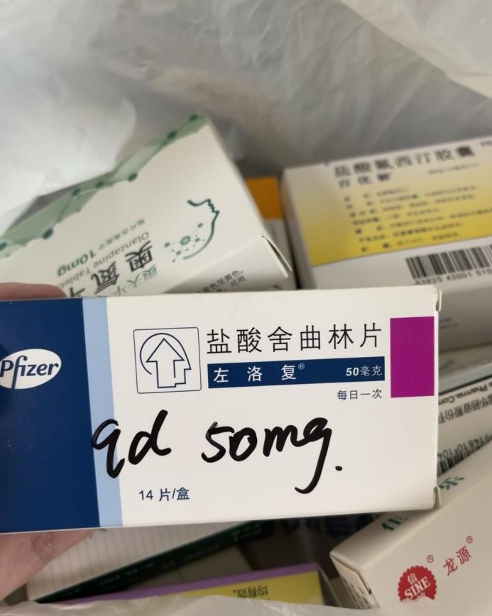 阿普唑仑、地西泮、舍曲林,余浩家客厅的茶几上摆着他每天必须服用的药物。他介绍到,全部从最低剂量开始服用,观察有无不良反应,一星期后复诊,就这样,一星期又一星期,从25mg加到150mg,这背后都是他积极治疗至今的证明。